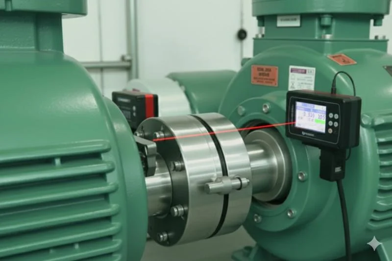 O serviço de alinhamento à laser consiste em ajustar com precisão o posicionamento de eixos em equipamentos rotativos, garantindo que estejam alinhados de forma correta.